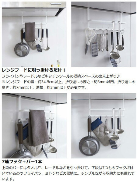 フック レンジフードフック 7連フック タワー tower ( レンジフック レンジハンガー キッチン収納 レンジフード キッチンツールフック キッチンツールホルダー レンジフードハンガー 壁面収納 引っ掛け 吊り下げ 山崎実業 yamazaki )【39ショップ】