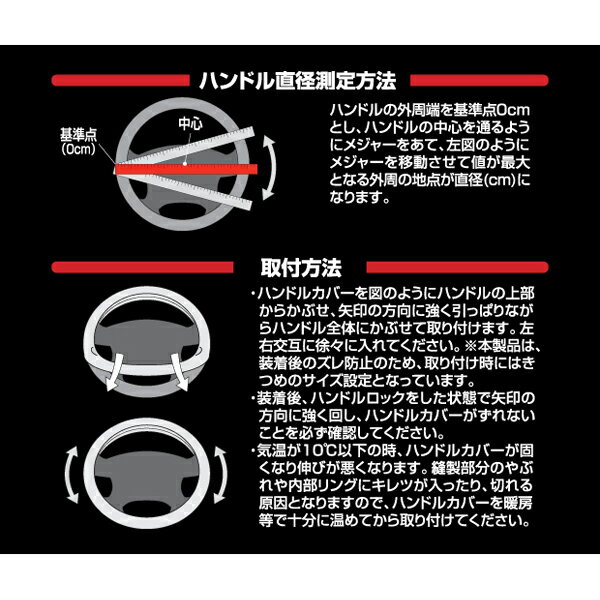 年式・グレードによってハンドル寸法が異なる場合がありますので装着するハンドルサイズ(ハンドル直径測定方法参照)をよくご確認の上、お買い求め下さい。