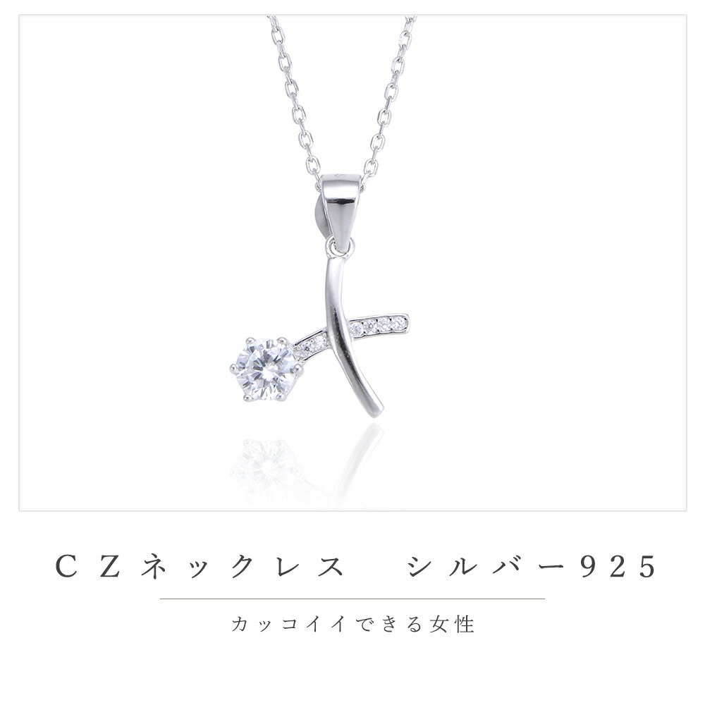 ネックレス レディース シルバー925 ペンダント 一粒 cz シンプル 金属アレルギー対応 ジュエリー アクセサリー クロス SILVER925 プレゼント ギフト カジュアル ブライダル 大人 上品 女性用 ワンポイント ゴージャス エレガント キュービックジ